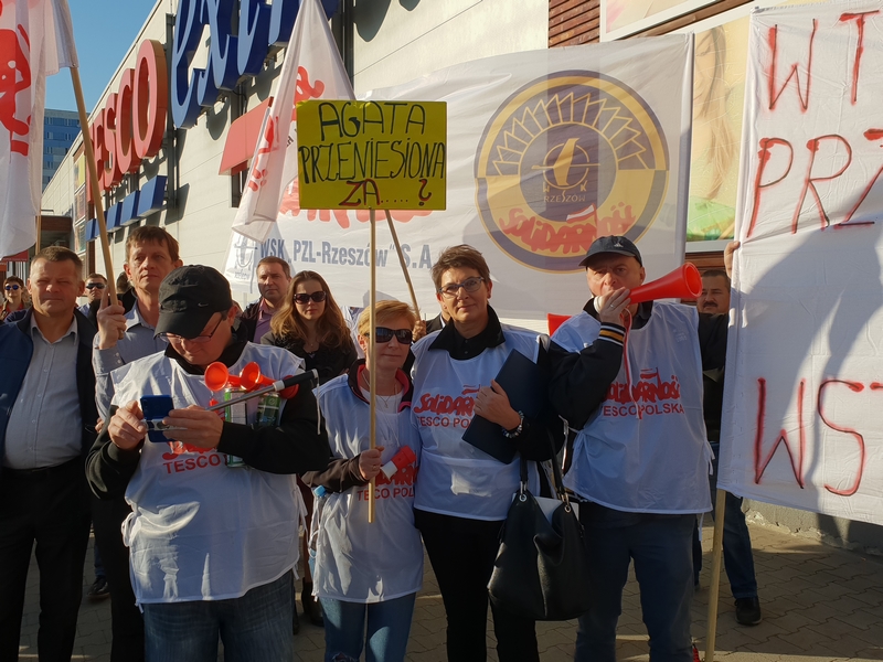 Na parkingu Tesco w Rzeszowie, na al. Powstańców Warszawy wczoraj odbyła się pikieta w obronie przewodniczącej Komisji Oddziałowej Solidarności w Tesco, Agaty Strzałkowskiej. Na proteście odczytano specjalny list od przewodniczącego NSZZ Solidarność, Piotra Dudy.