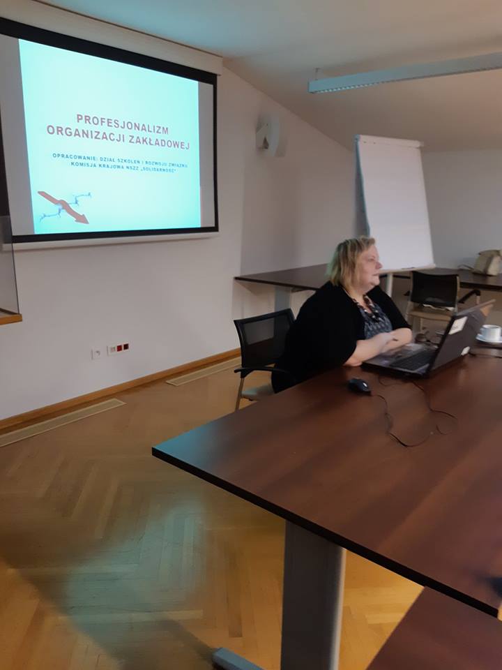 5 i 6 lutego 2019 r. w Gdańsku odbyło się szkolenie Komisji Zakładowej oraz Komisji Oddziałowych. Tematem szkolenia był Profesjonalizm Komisji Zakładowych. Szkolenie prowadziła Maria Kościńska trenerka z Komisji Krajowej NSZZ "Solidarność". Podczas pobytu na szkoleniu, uczestnicy mogli zwiedzić historyczne miejsce - Salę BHP.